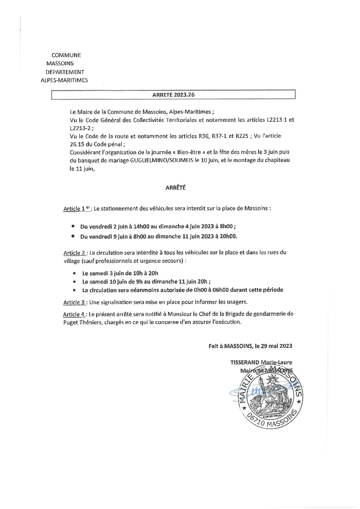 Agenda,Général,La communeStationnement et circulation Juin 2023 Publié le 31 mai 202331 mai 2023 par Sylvie COLOMBON Journée Bien-être samedi 3 juin 2023 Merci à tous pour ce merveilleux 2ème Festival