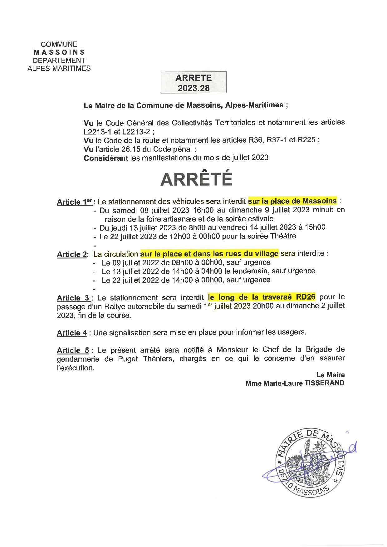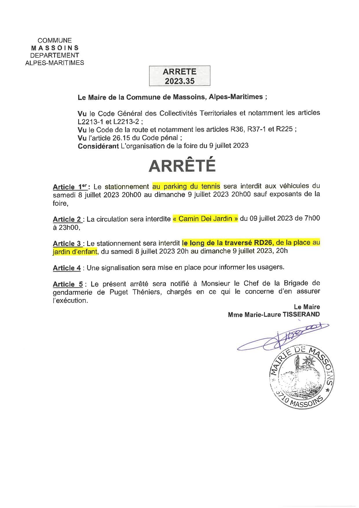 Arrêtés de Stationnement et Circulation Foire et Festivités de JUILLET