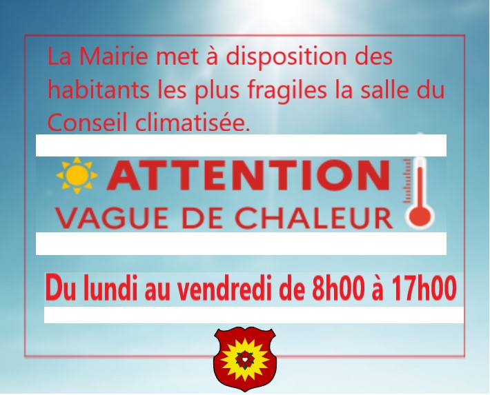 Agenda,CCAS,Général,La communeSalle climatisée durant la canicule Publié le 19 juillet 202319 juillet 2023 par Sylvie COLOMBON Durant la vague de chaleur la municipalité met à disposition des plus fragiles la salle du conseil municipal (climatisée) Messe à Sainte Anne Le débardage à cheval