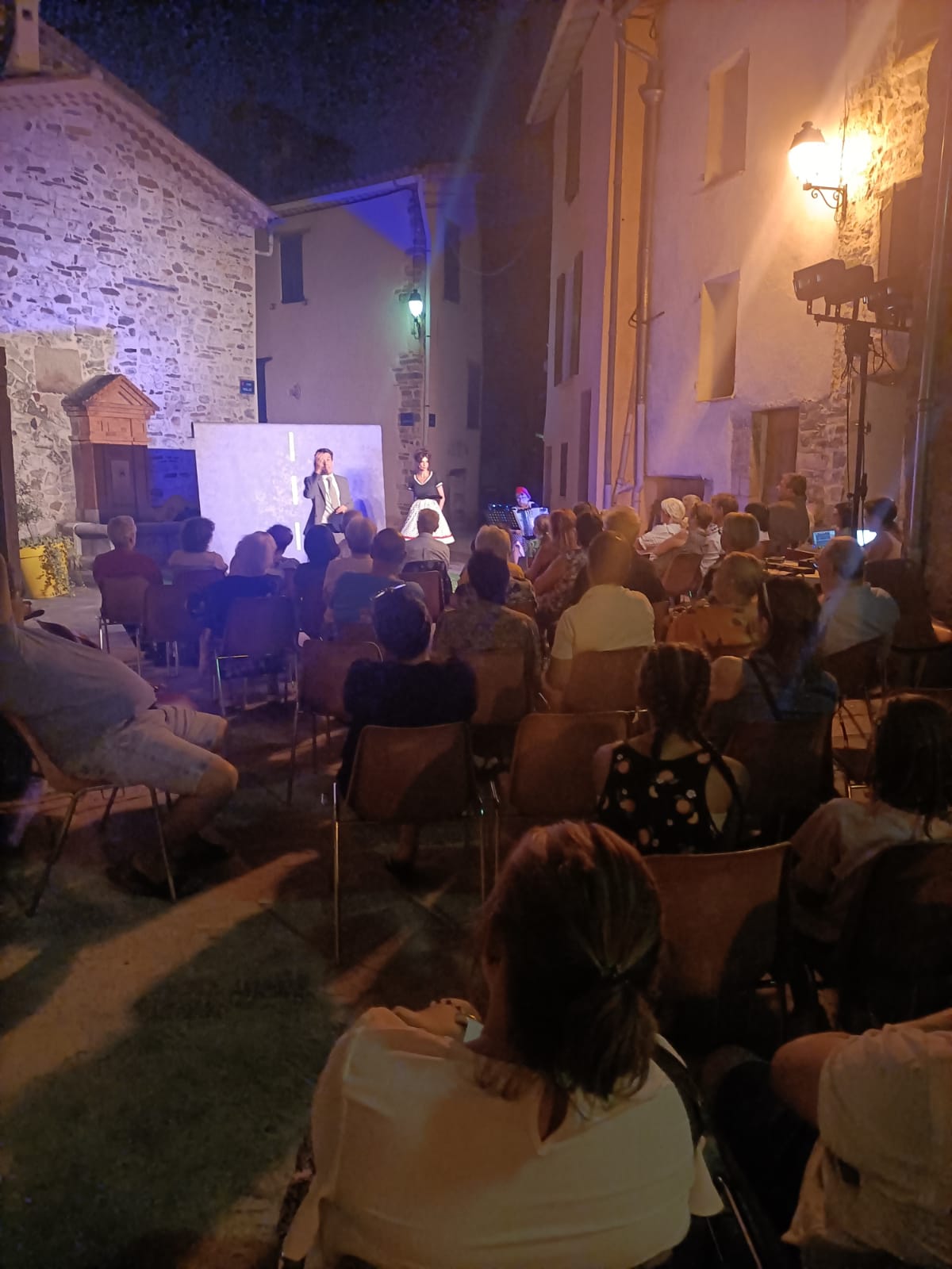 C’est donc la Comédie Musicale autour de Bourvil, jouée par les membres de Mademoiselle et Cie, qui s’y est installée ce samedi 22 juillet à 21h08 pétante.