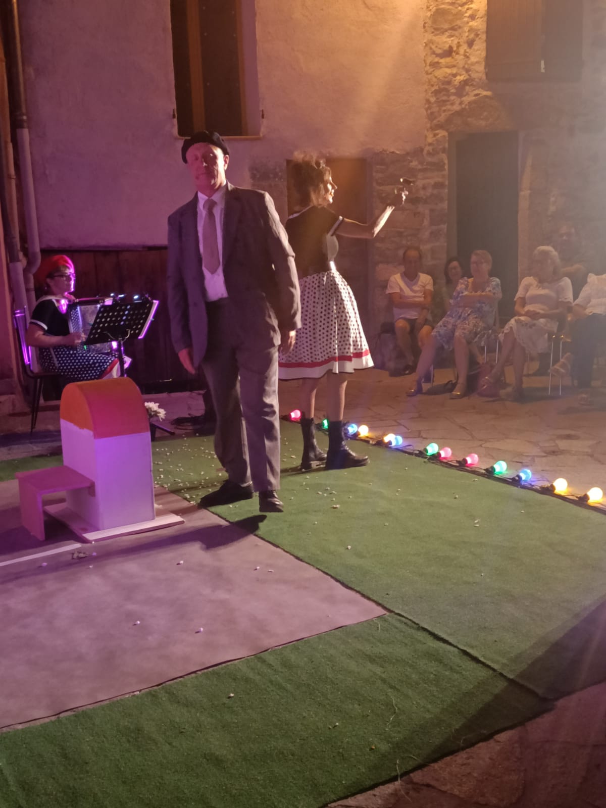 Durant plus d’une heure les chanteurs comédiens nous ont fait fredonner les airs de notre jeunesse ou notre enfance au son de l’accordéon. Merci à tous les artistes, chanteurs et musiciens,