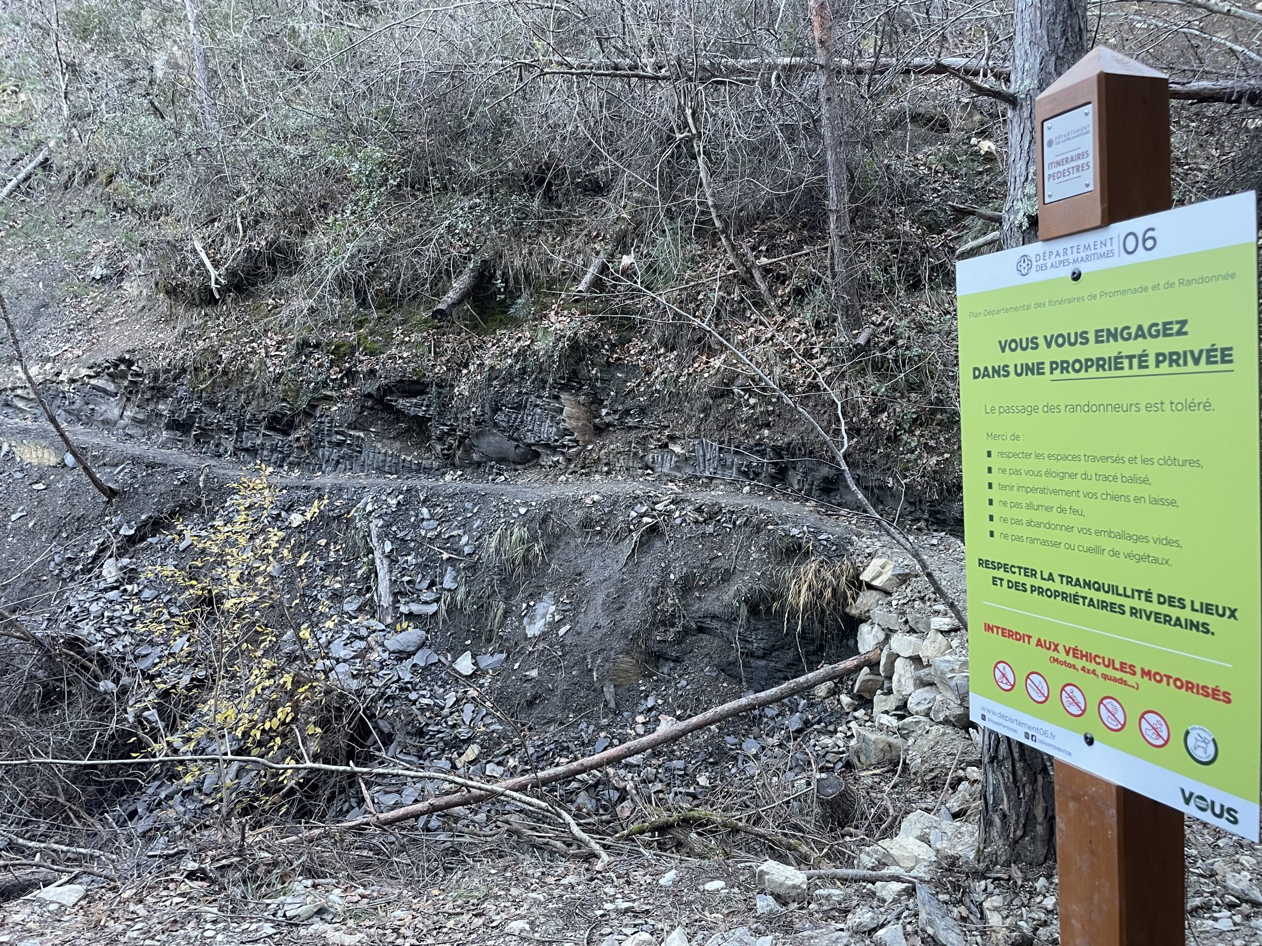 La partie du GR 510 au niveau du ravin de l‘Ubac (la limite entre Massoins et Tournefort) avait été emportée par la tempête Alex en octobre 2020.