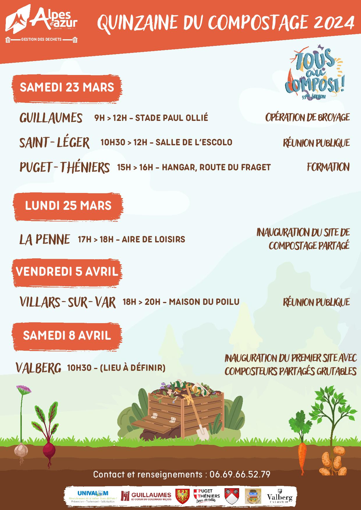 La Communauté de Communes Alpes d’Azur, en partenariat avec les communes et le syndicat Univalom, communique sur la quinzaine nationale du compostage de proximité, qu’elle organise pour la 3ème année consécutive et qui aura lieu cette année du samedi 23/03 au lundi 08/04.