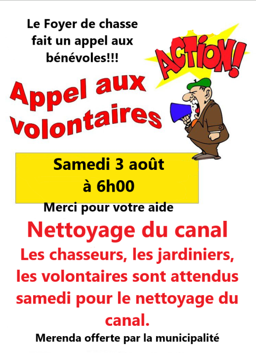 APPEL A BENEVOLES NETTOYAGE CANAL D’ARROSAGE