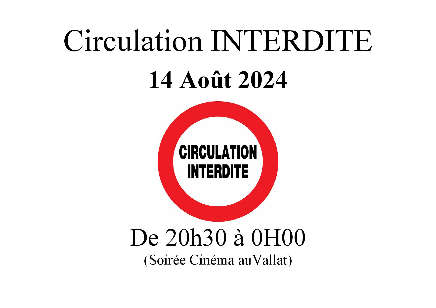Agenda,CCAS,Général,La communeINTERDICTION DE CIRCULER DANS LE VILLAGE Publié le 14 août 202414 août 2024 par Sylvie COLOMBON En raison de la soirée cinéma de ce jour 14 août 2024 il est rappelé que la circulation est interdite de 20H30 à 0H00 dans les rues du Village Bonne soirée à tous et toutes INFOS DU PONT de la RD26 Appel aux Bénévoles Reporté au 7 Septembre