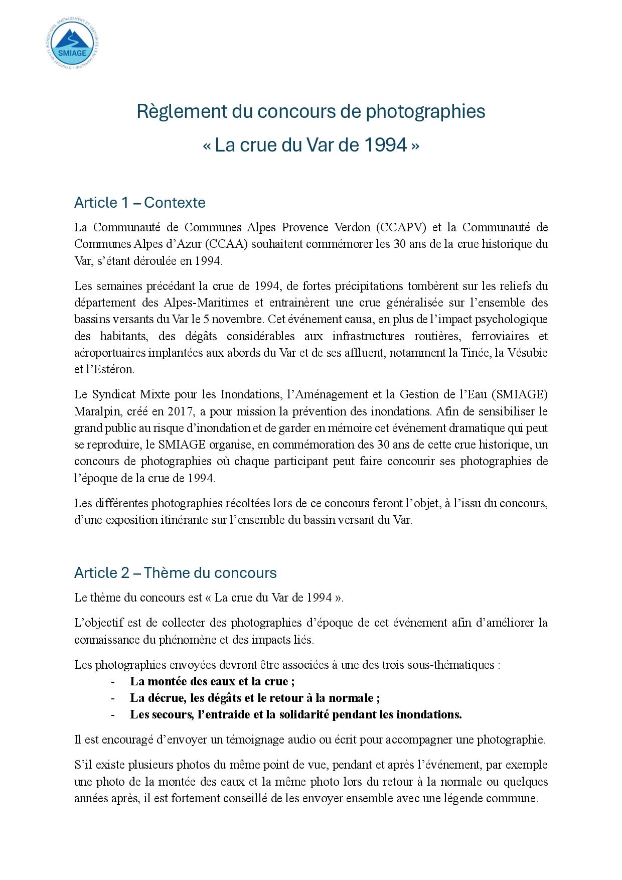 • Concours photo de la crue de 1994 abordant 3 thématiques,
