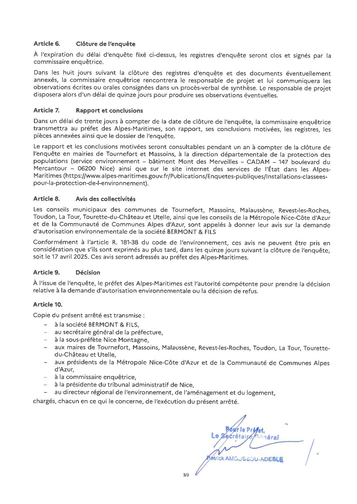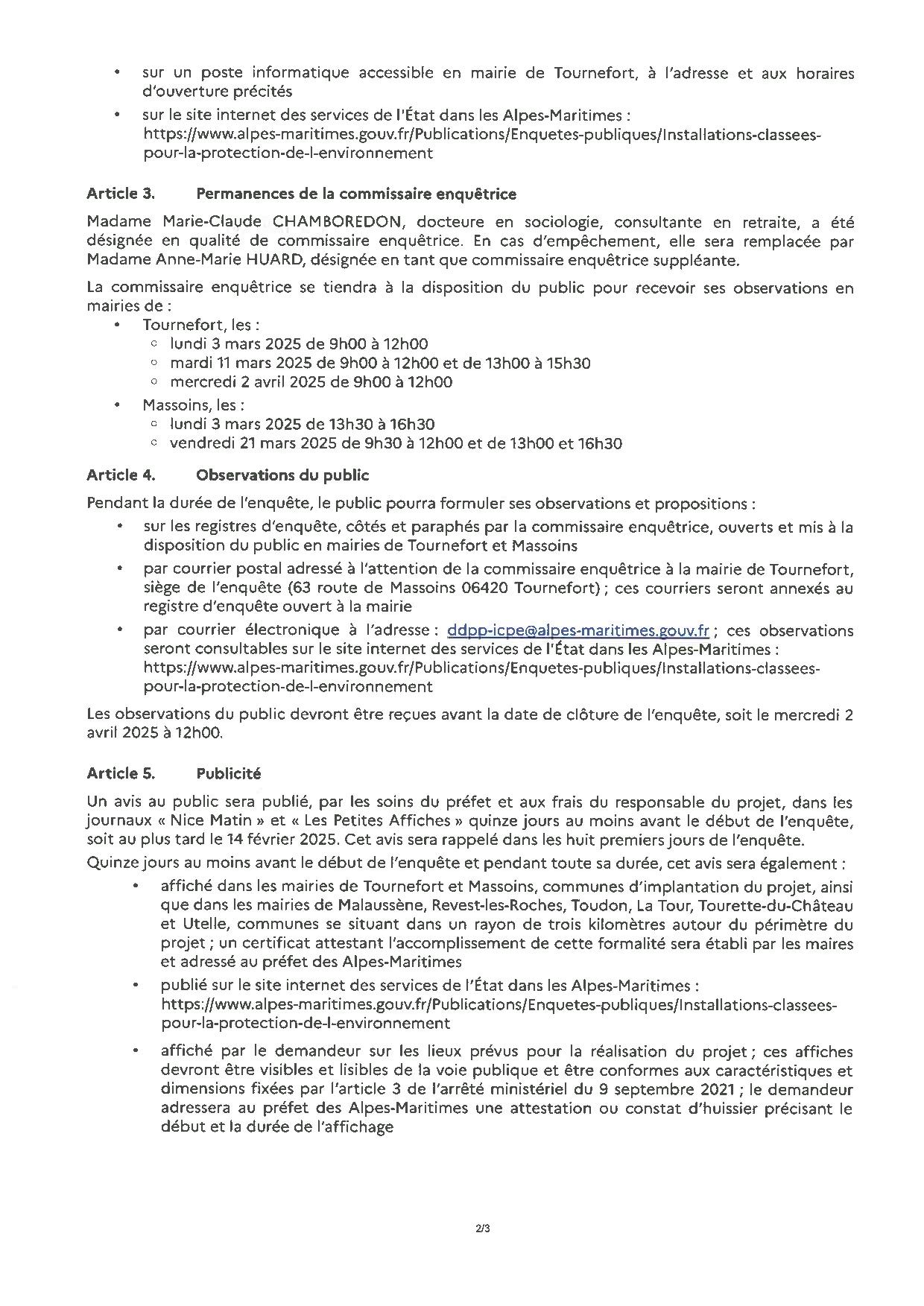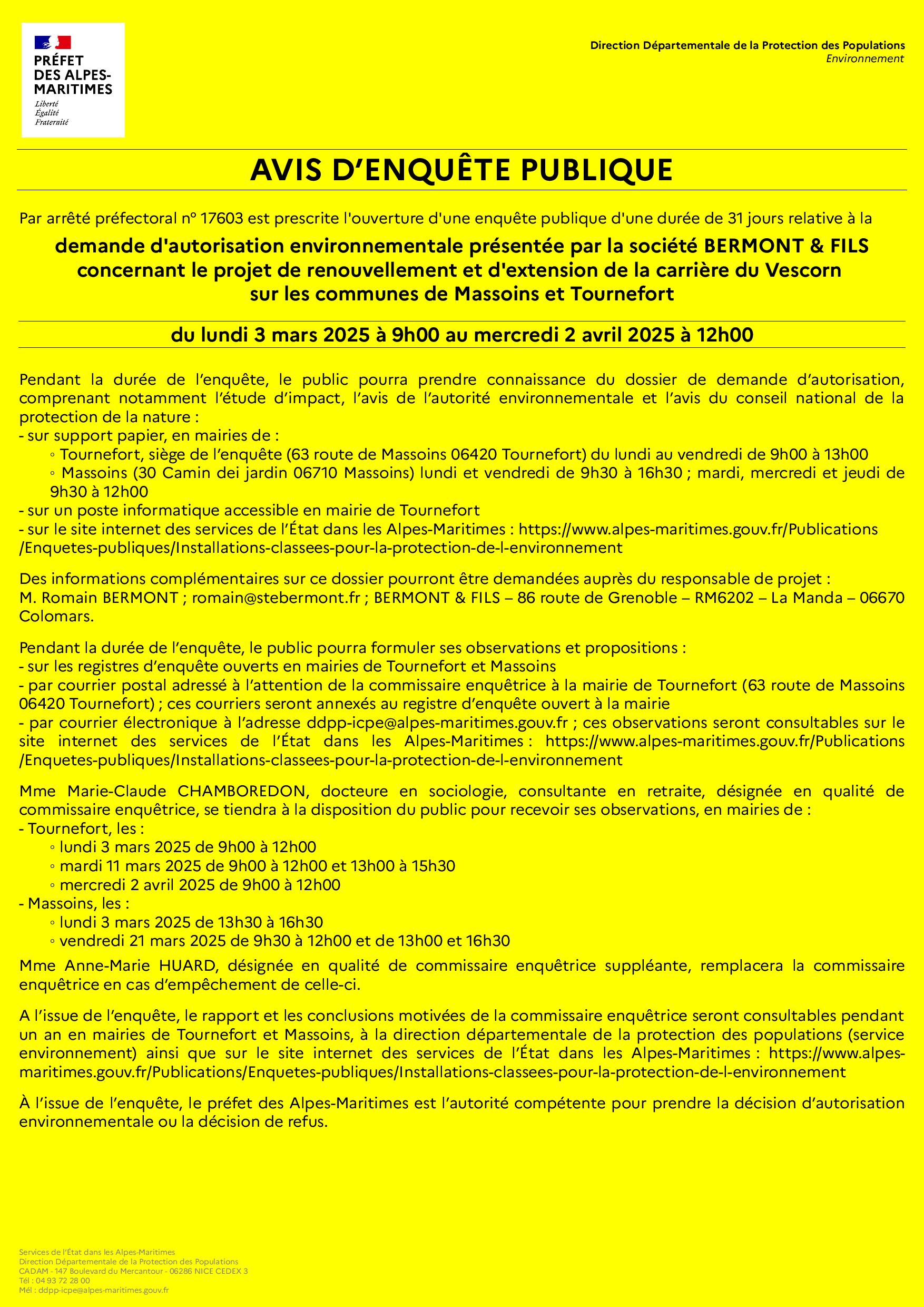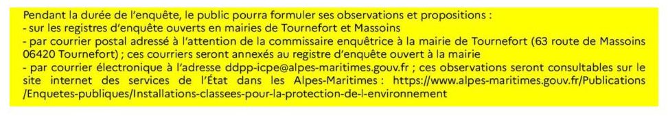 La Commissaire enquêtrice, Madame Marie-Claude CHAMBOREDON, Docteure en sociologie, consultante en retraite , se tiendra à la disposition du publique pour recevoir ses observations en mairie de MASSOINS :