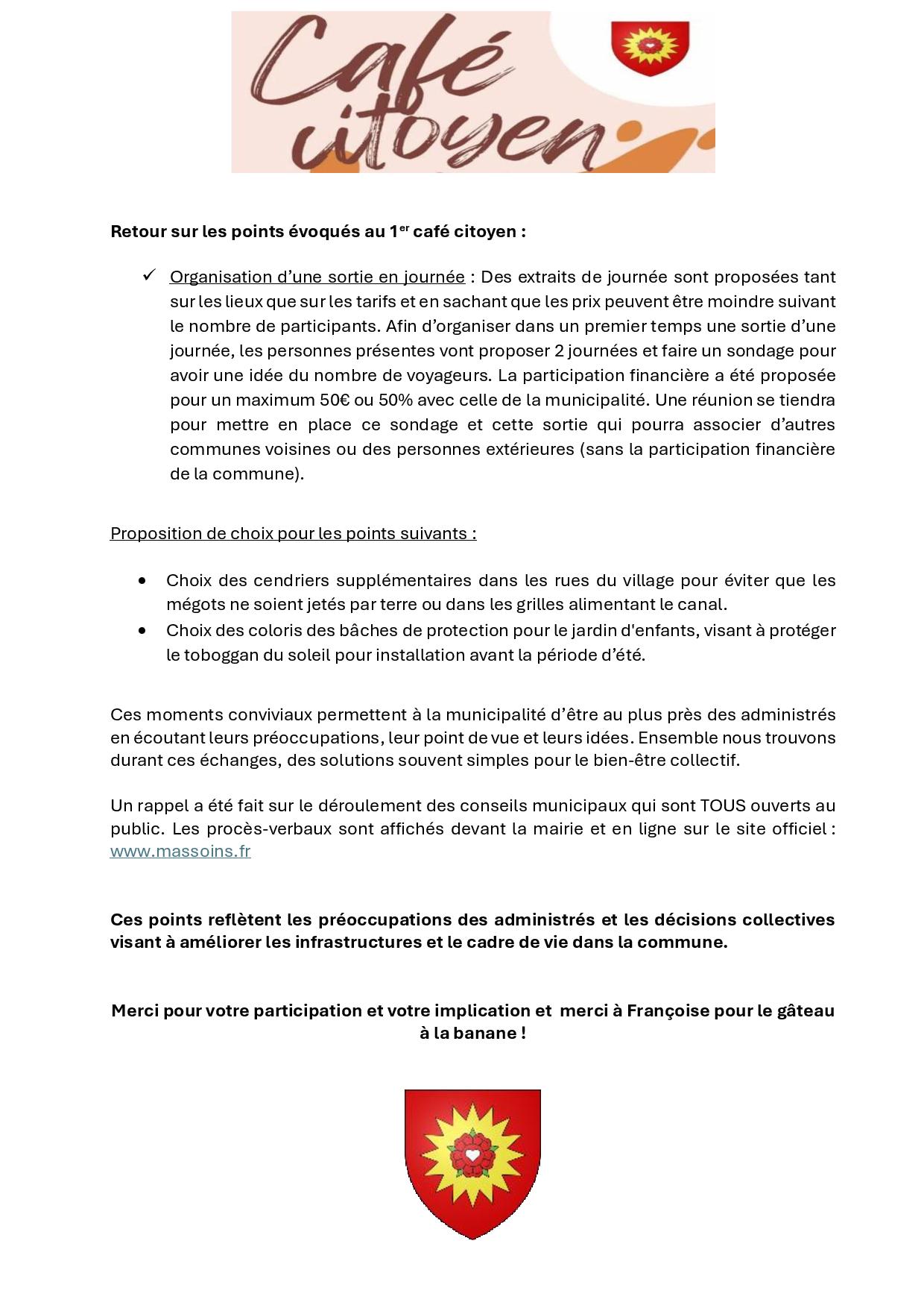 CCAS,Général,La communeRésumé du café citoyen du 25 janvier 2025 Publié le 27 janvier 2025 par Sylvie COLOMBON VIGILANCE JAUNE « Pluies-Inondations » PERMANENCE DE FEVRIER DE LA MAISON DU DEPARTEMENT