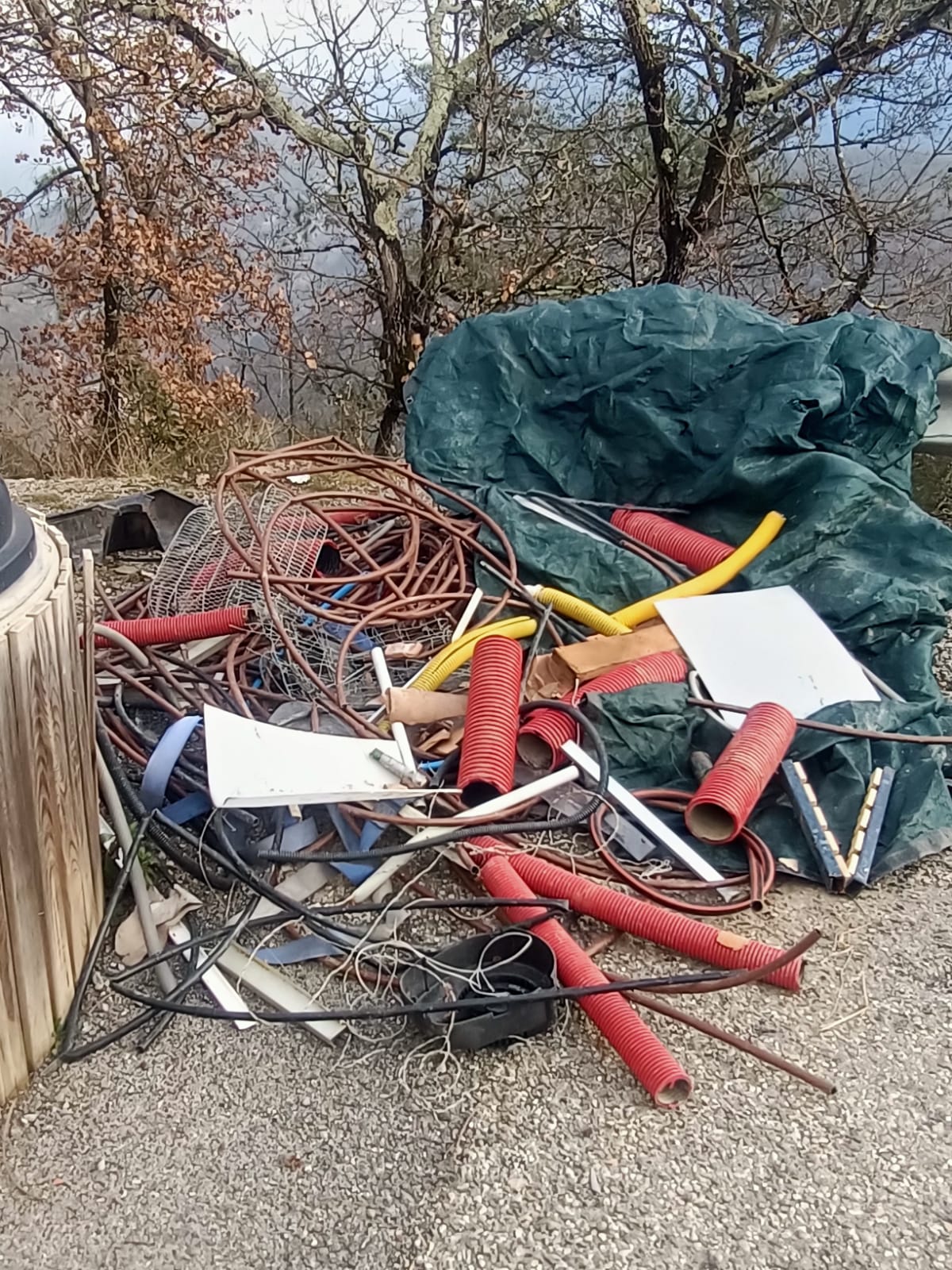 Divers déchets de travaux, de gaines d’arrosages, de VRD et des encombrants divers et variés.