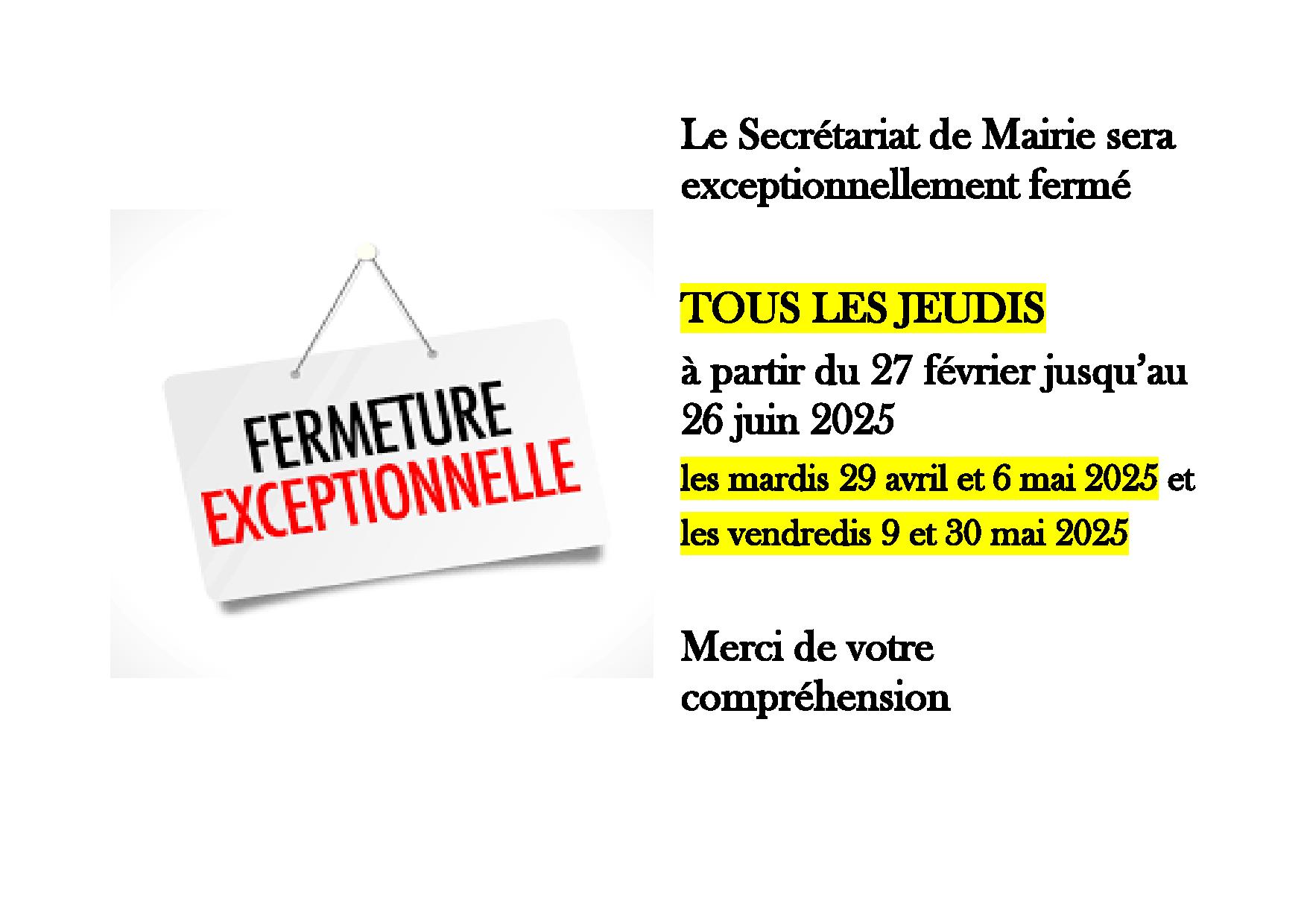 Général,La communeFermetures du secrétariat de Mairie Publié le 22 avril 2025 par Sylvie COLOMBON 3ème édition de la Journée Mondiale de la Terre Commémoration de l’Armistice du 8 mai 1945