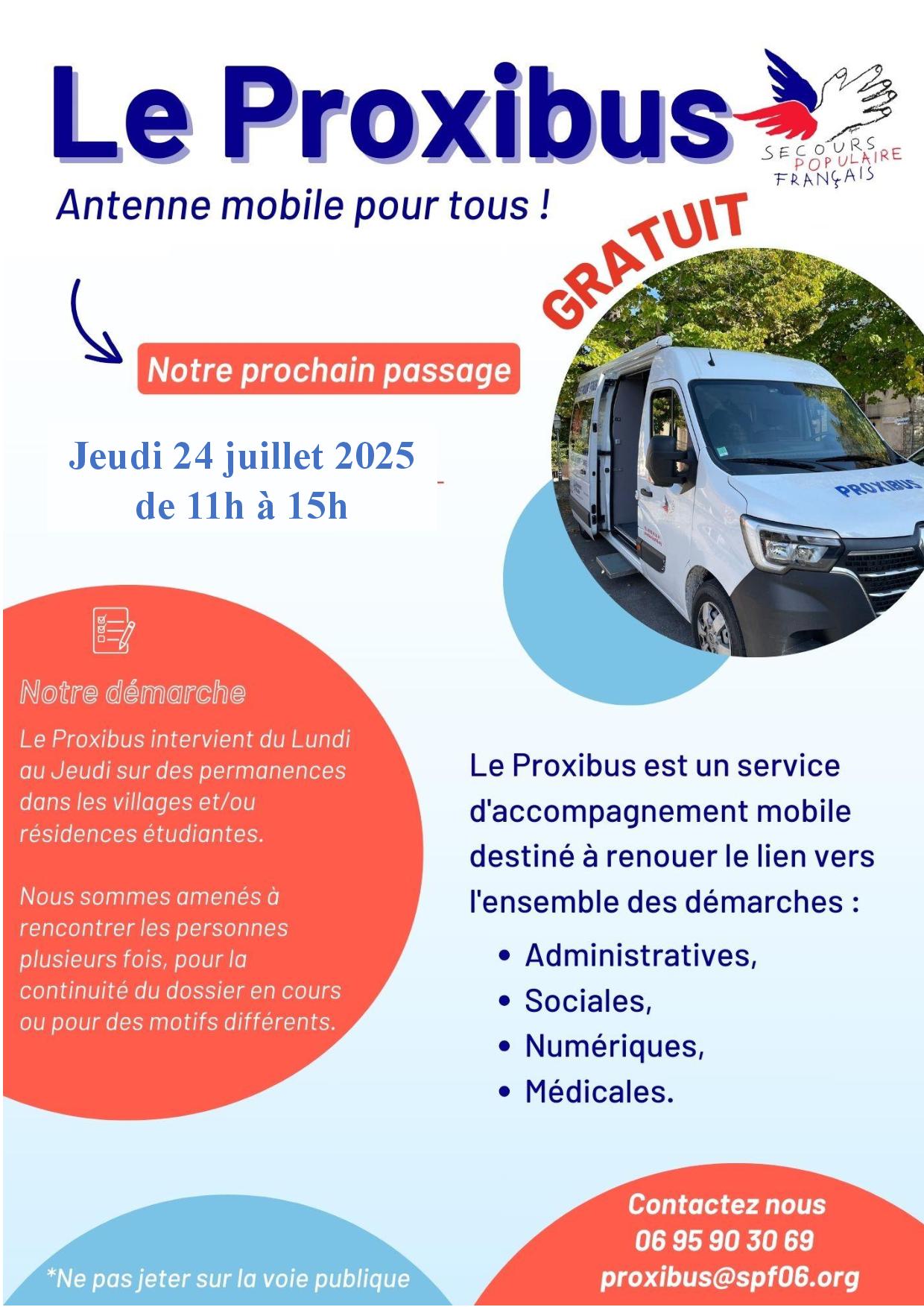 Le PROXI BUS fera sa permanence sur la place Saint Martin (devant le bar communal) le :