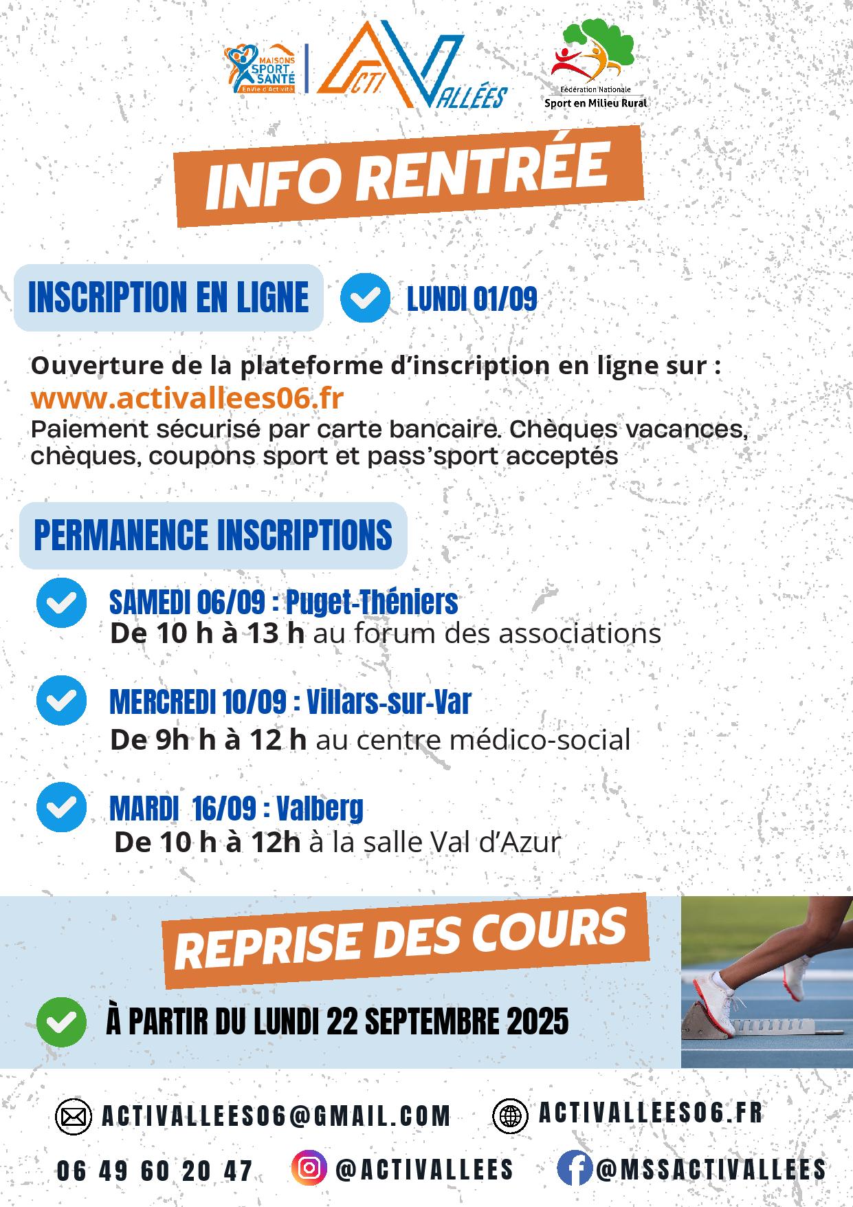 Les cours d’ActiVallées reprennent le 22 septembre et les inscriptions seront ouvertes le 1er septembre.