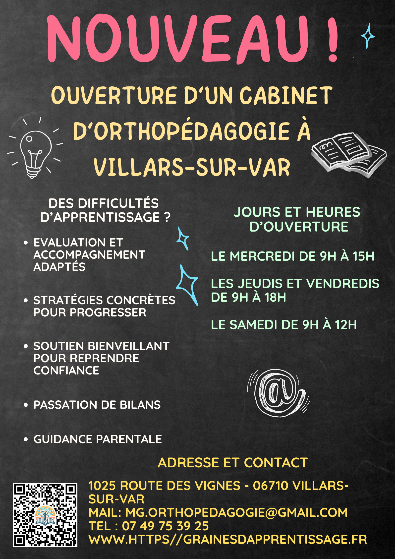 Ouverture d’un cabinet d’ORTHOPEDAGOGIE à Villars sur Var