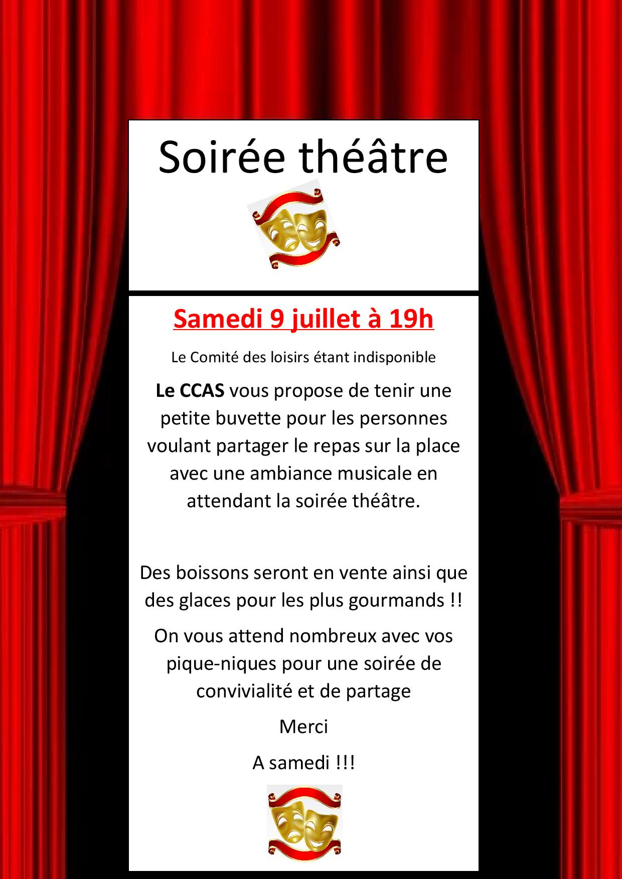 Agenda,CCAS,Général,La communeBuvette pour la soirée Théâtre Publié le 5 juillet 2022 par Sylvie COLOMBON Les Messes de l’été Cérémonie pour la Fête Nationale