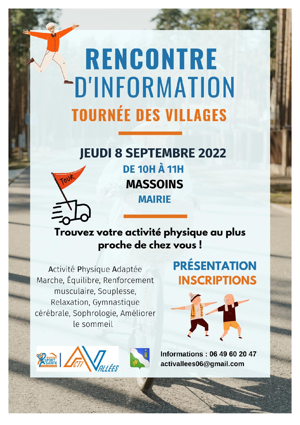 A l’occasion de la rentrée 2022/2023, Alice TORCY, Directrice de l’Association ACTI VALLEES06 , vous propose une rencontre en mairie de Massoins,