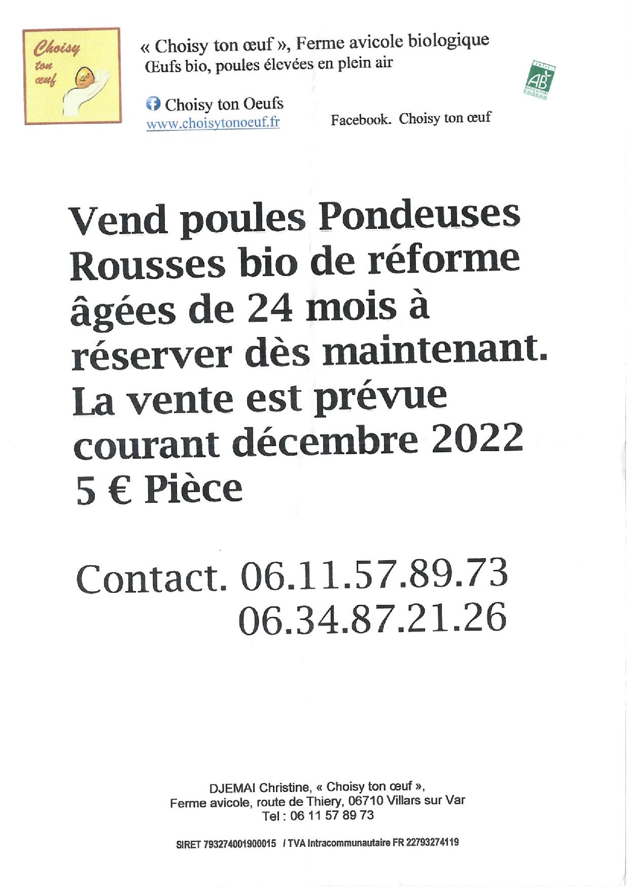 La Ferme Avicole CHOISY TON OEUF de Villars sur Var vous informe