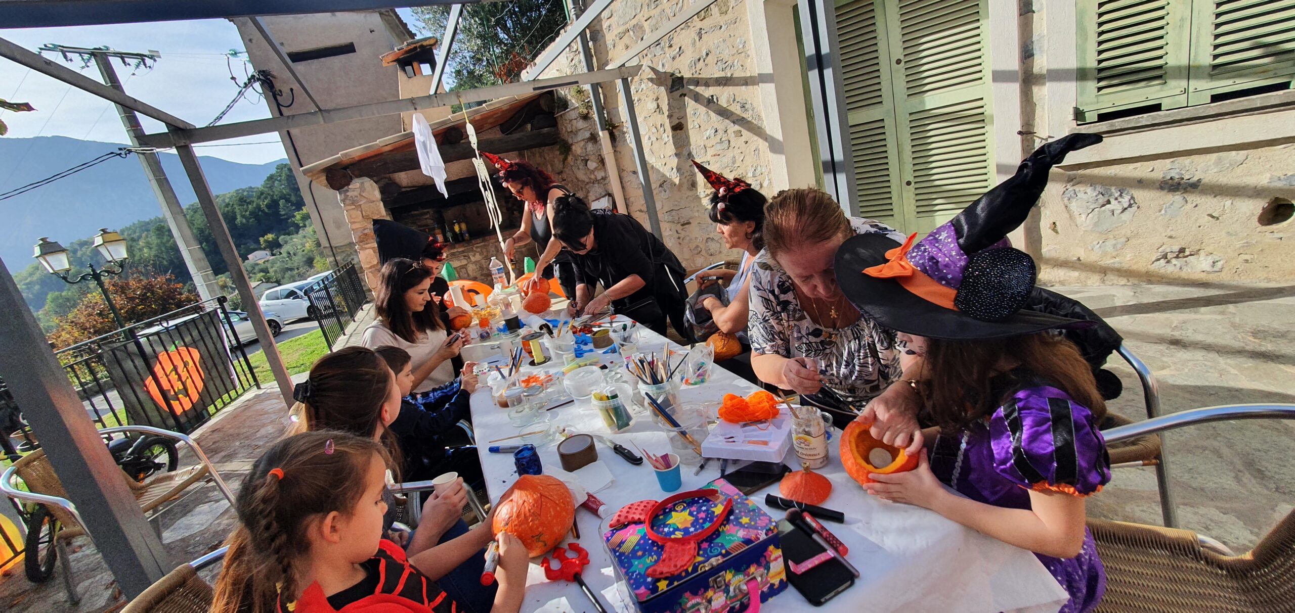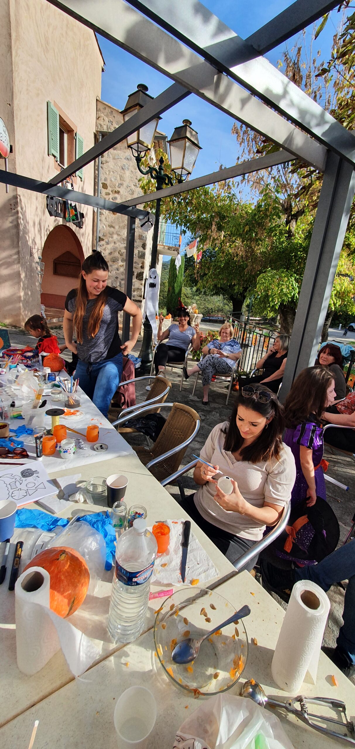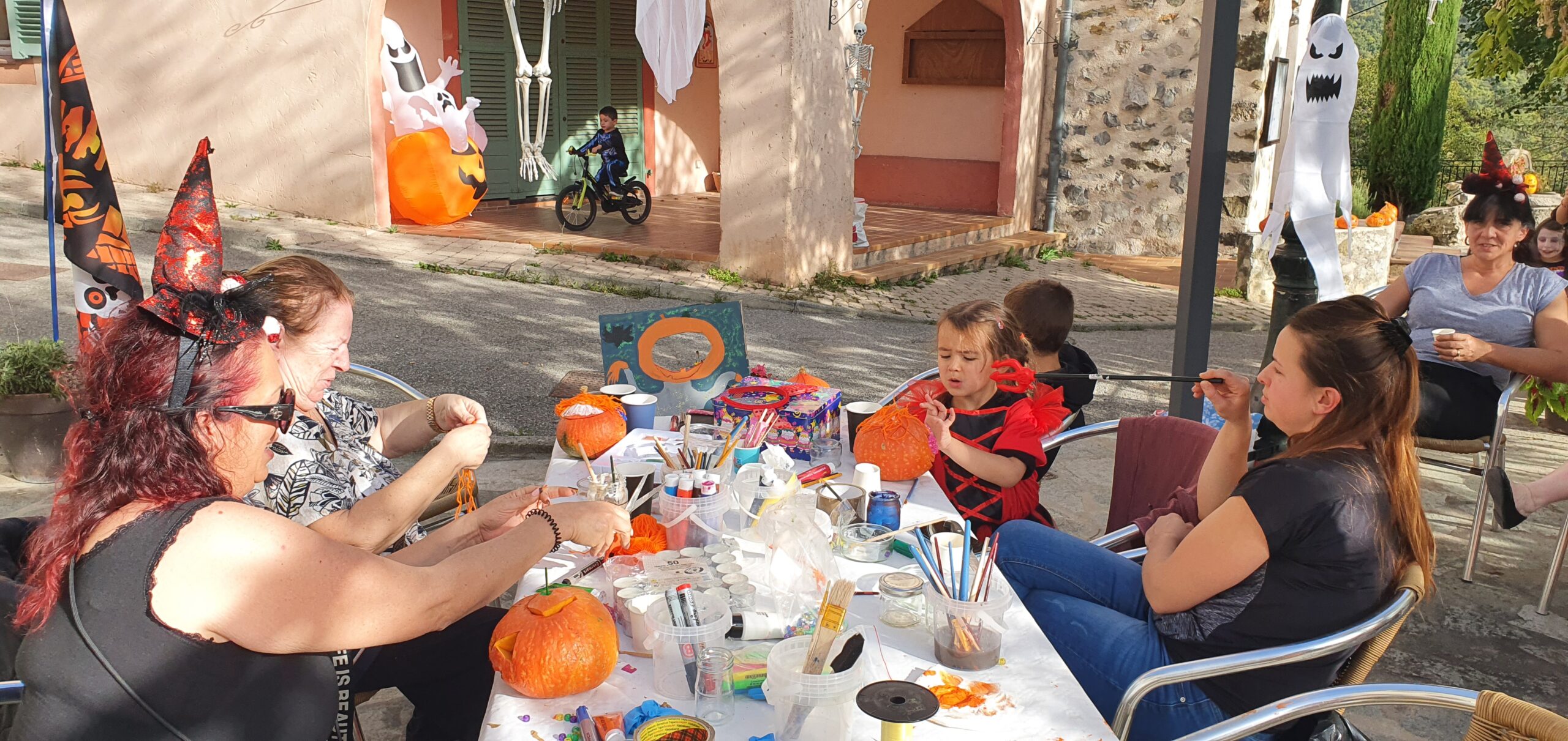 Magnifique après midi avec petits et grands pour l’atelier de décorations, peintures, sculptures sur Potimarrons (Offert par Gilles des Légumes de Saint Paul), le maquillage, la peinture sur pot et les collages.