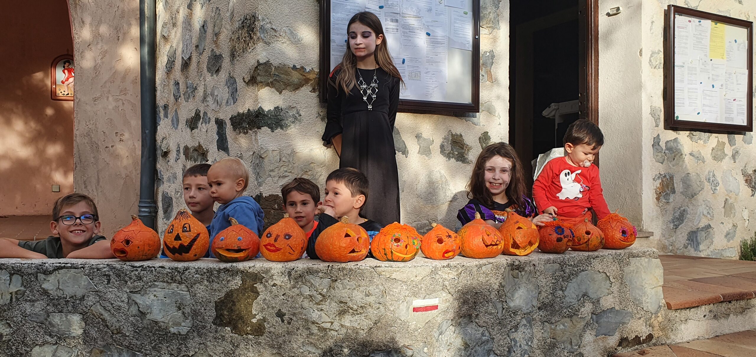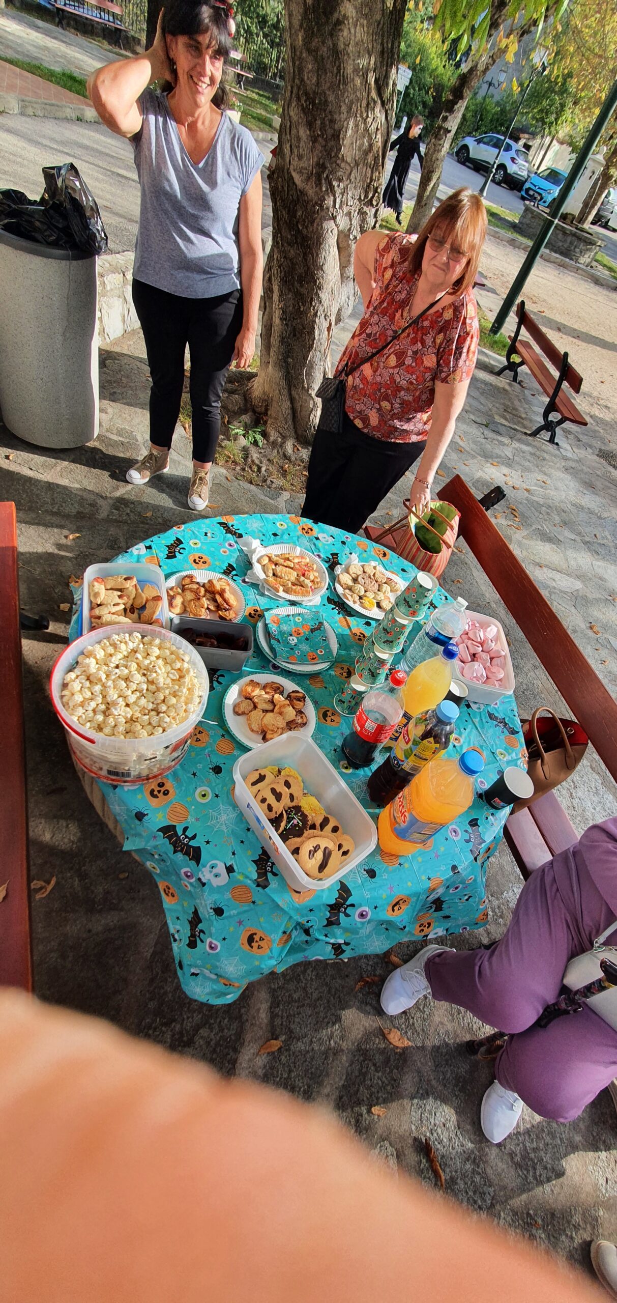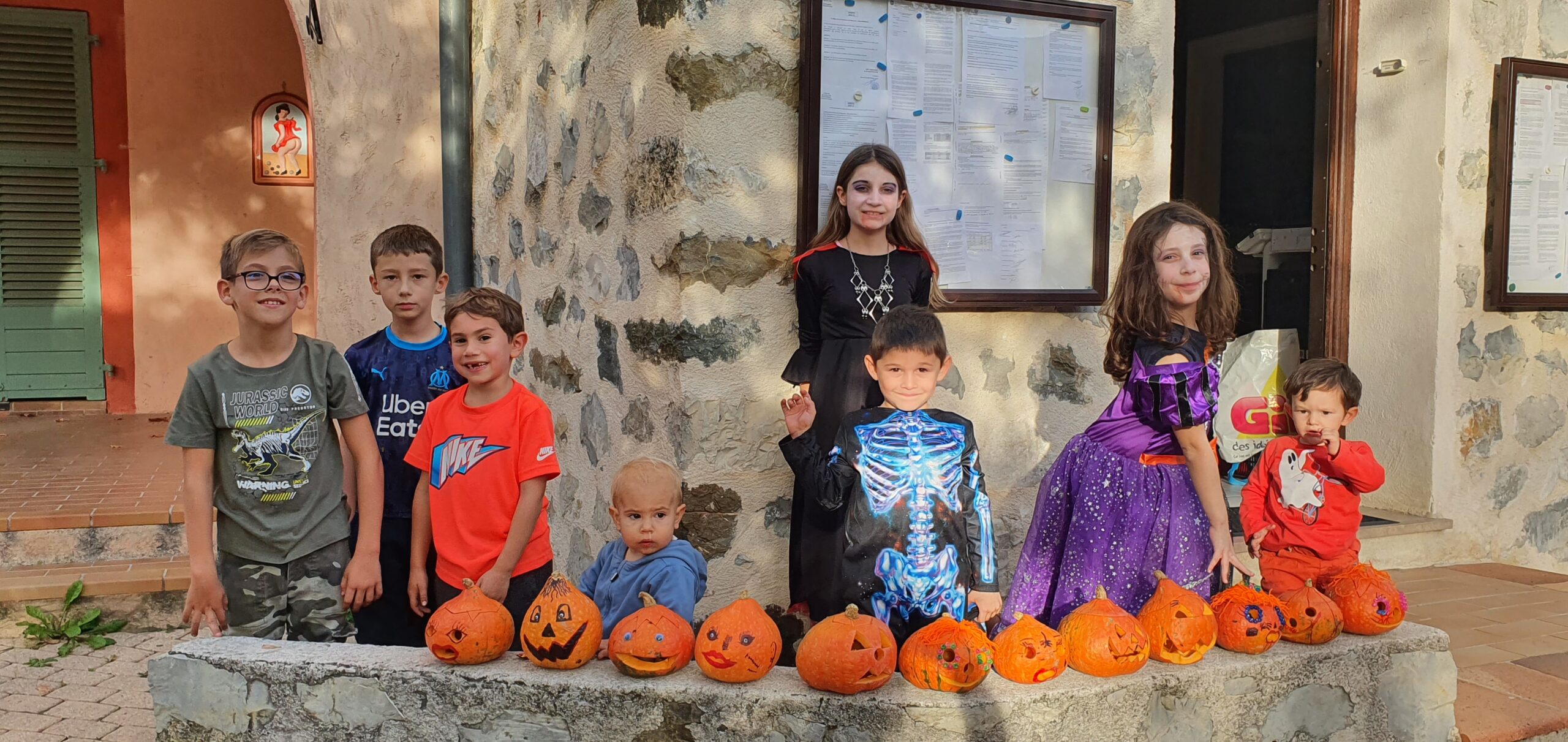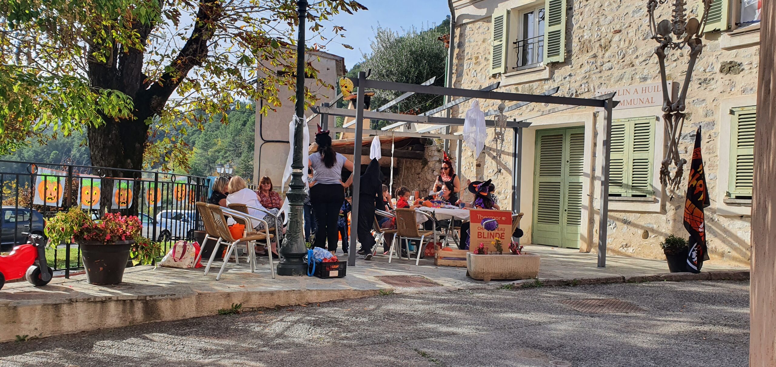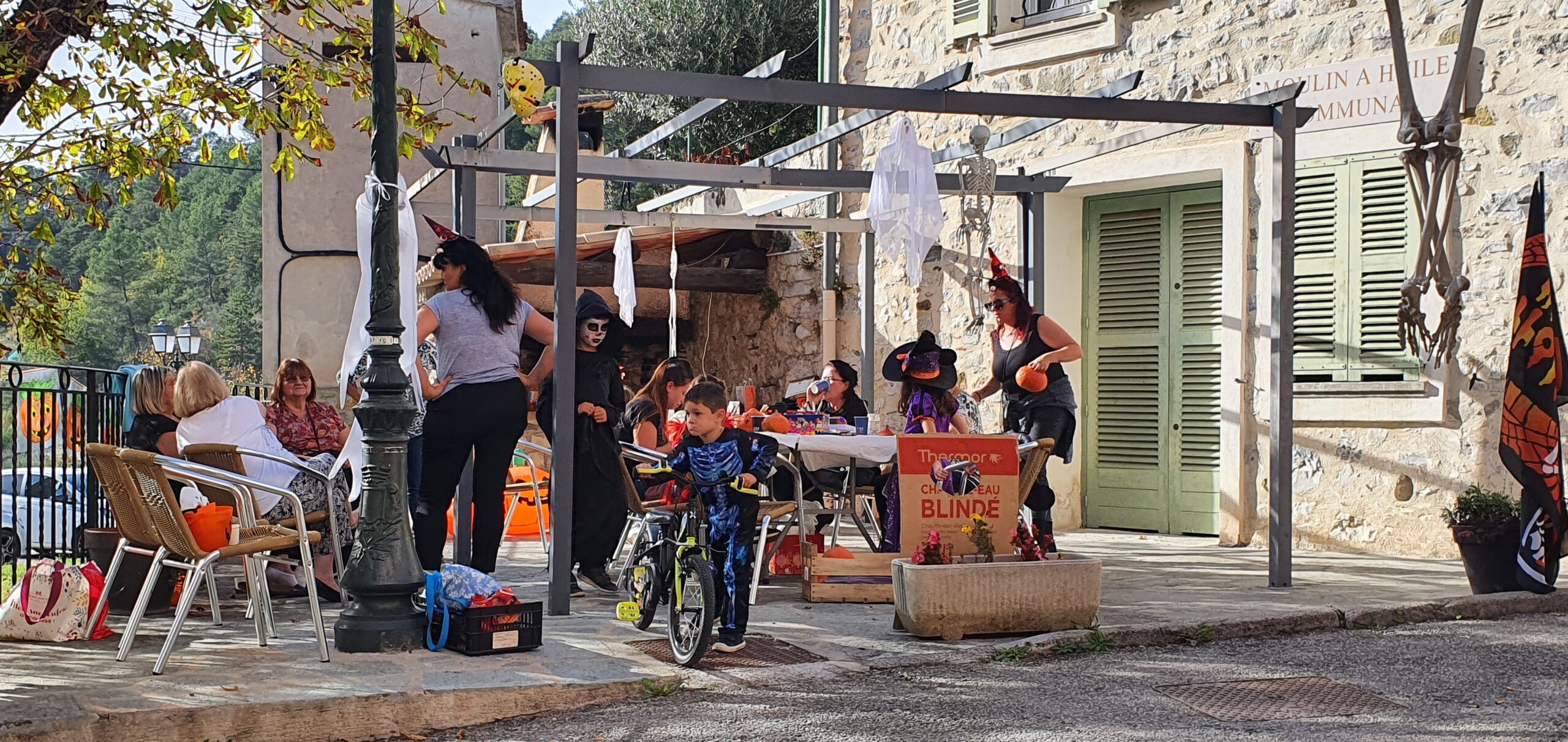 Puis départ pour la chasse aux bonbons dans le village et chez les habitants qui ont joué le jeu pour les enfants… Après cette grande courses un bon petit goûter préparé par Lola, Yvette et Sylvie composé de meringues, palmiers, biscuits, chocolats, biscuits en forme de doigts et pop corn, sans oublier les sachets de bonbons de Corinne et Monique!!